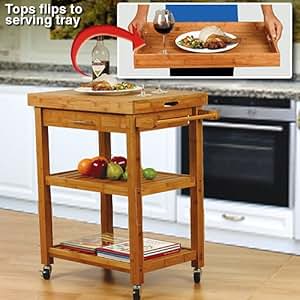 Amazon.com : Kitchen BAMBOO Wood Rolling Serving Tray Storage Garden Party Tea Cart wheel : Tea