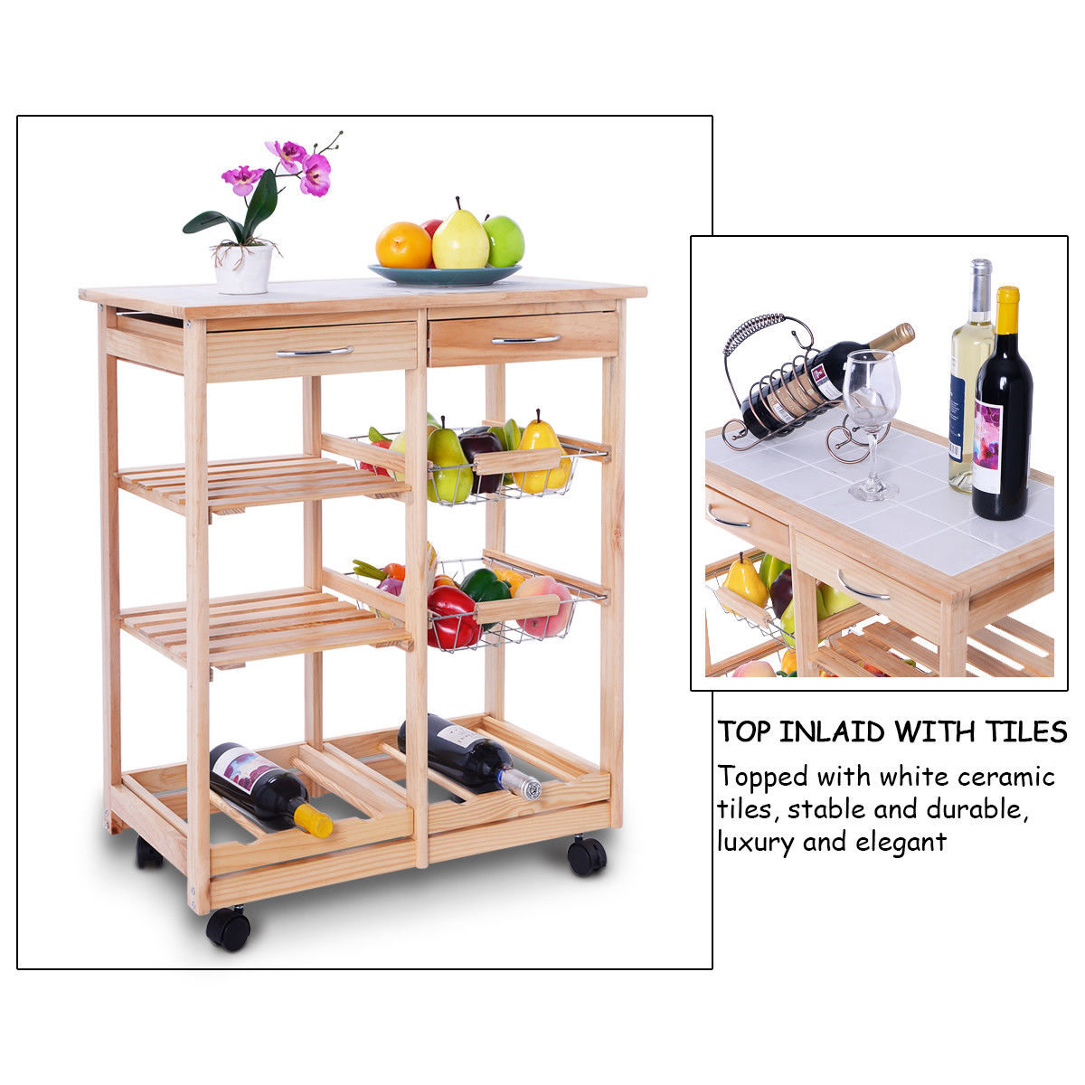 Costway Rolling Wood Kitchen Trolley Cart Dining Storage Drawers Stand Durable